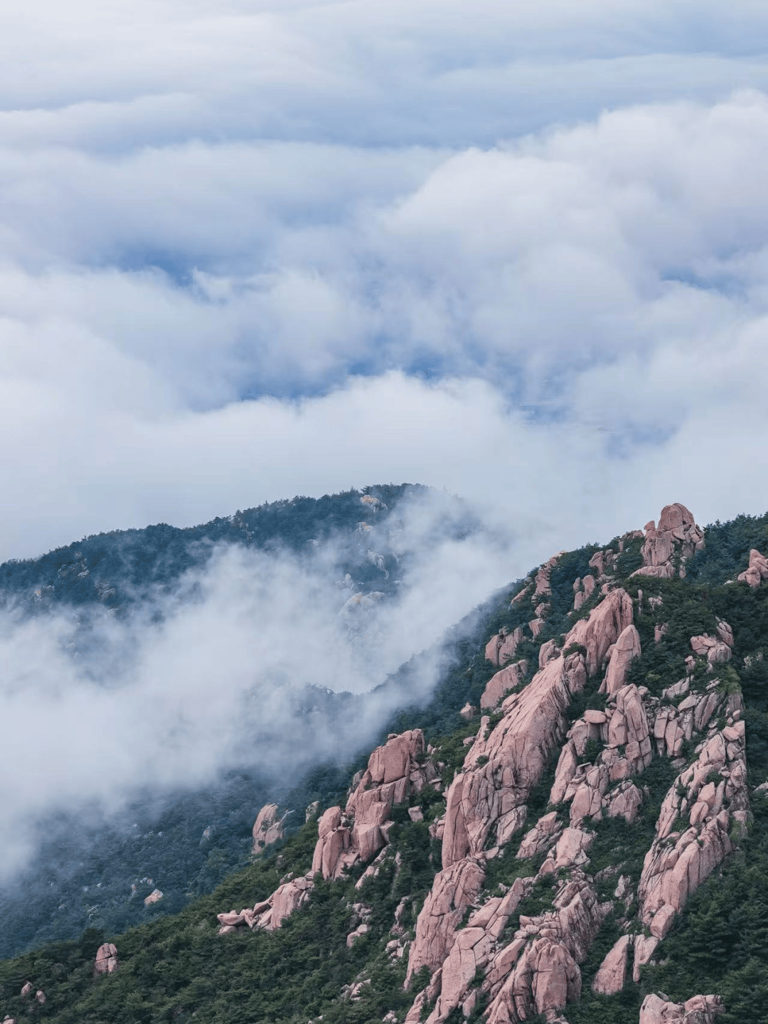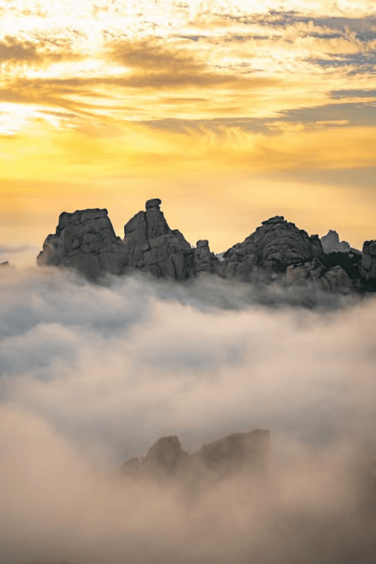 要说云海的极致,泰山与崂山堪称一绝。泰山云海翻涌时,群山被白云吞没,仅露山头如云上仙岛,微风过处,云海浮波,尽显岱宗雄奇。