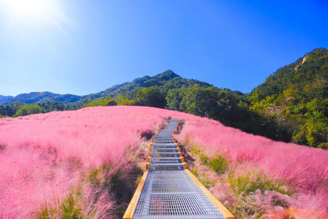 秋日的风掠过昆嵛山的石门里景区,掀起一场温柔的粉色风暴,专属石门里的秋日浪漫准时上线!顺着雾峰花海蜿蜒的步道前行,目光很快就会被那片粉色绒海捕获。