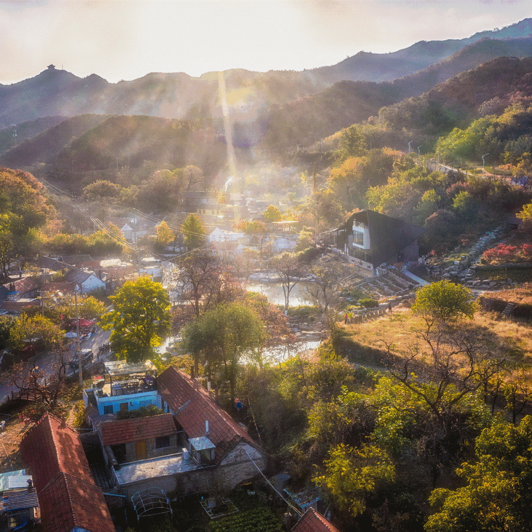 四面山合,一径斜穿,飞峙流泉,鸟啼花落,四时堪怡,不亚武陵桃源,这里就是里口山。沿着王家疃村中的蜿蜒小径走进山中,徒步的热意被秋日清风悄然驱散,沿途绿树成荫,屋舍错落,多彩的如画风景与宁静的生活交织起令人心生向往的画卷。 登高望远,尽览五彩斑斓,看流云舒卷,自在惬意。
