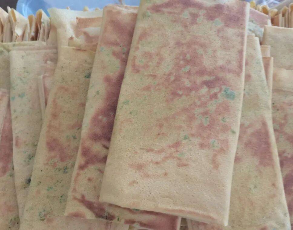 安丘大盛煎饼原料纯正、全手工作业,口感甜脆,煎饼成型后,在内部填充花生碎、芝麻、葱花,捧在手里,香气扑鼻,让人胃口大开。
