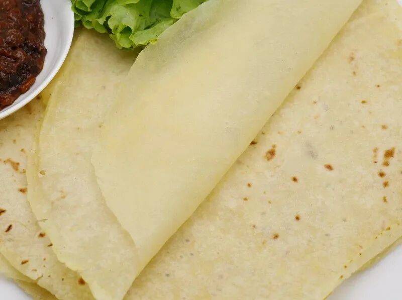 景芝三页饼起源于清乾隆年间,每张三个小面团,擀至碗口大时三页摞在一起,三层之间涂以食油,擀薄后置鏊子上温火烙,晾透叠起,数日不干,柔软如初。