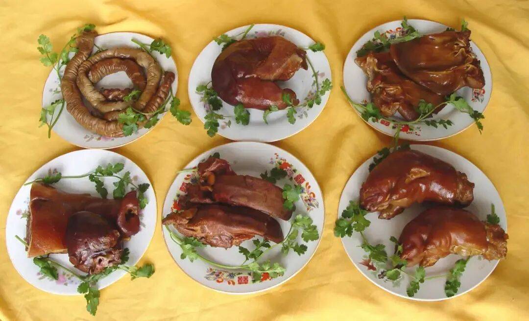 芝泮烧肉主料是猪头、猪肠、猪肚、猪蹄、猪心、猪肝、猪肺等,添加20多种中药,经洗、揉、煮、熏、烤等多道工序,距今已有600多年的历史。