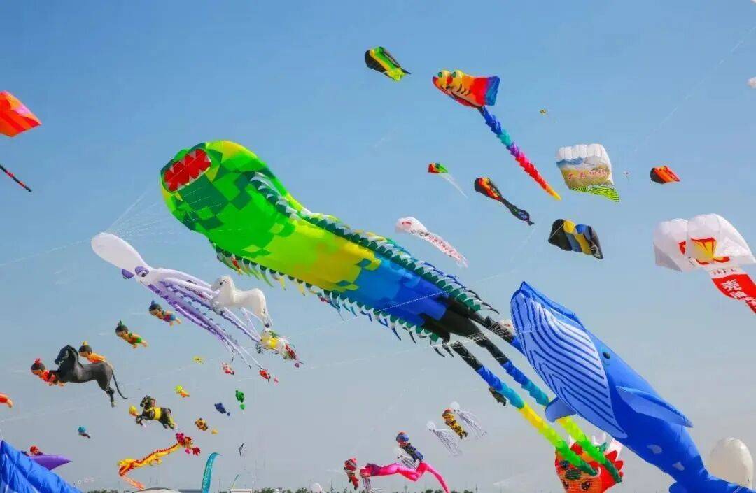 每年四月,世界风筝公园便成了风筝的海洋,这里是潍坊国际风筝节的举办地。来自世界各地的风筝在此竞技,最长的串式风筝绵延数千米,如巨龙穿梭云端。