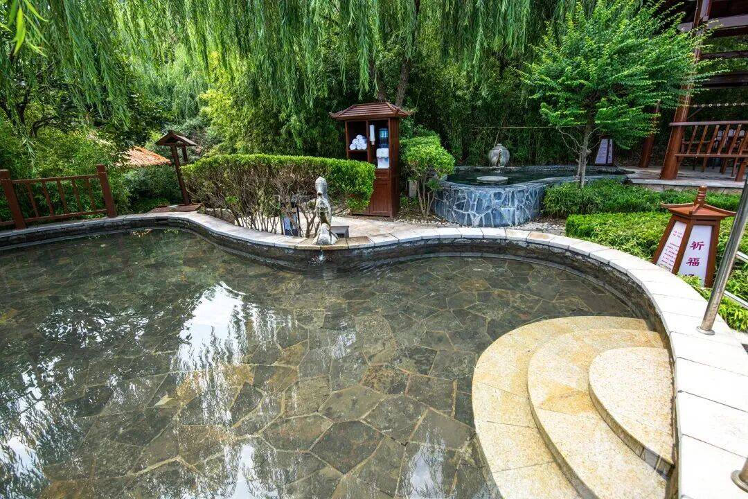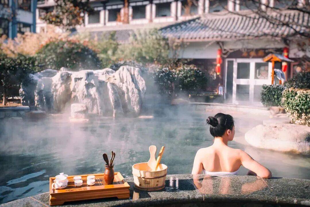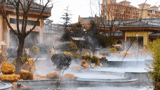 中式飞檐下的汤池蒸腾着白雾,与青砖黛瓦相映,让人在暖泉中与千年历史温柔相拥。