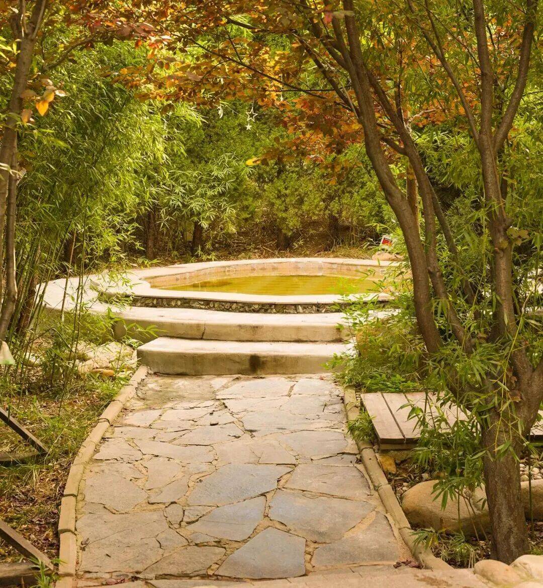 泡在山间汤池里,看阳光透过枝叶洒下斑驳光影,听鸟雀在林间啼鸣,呼吸着负氧离子充盈的空气,真正实现“浴在景中,景在心中”。