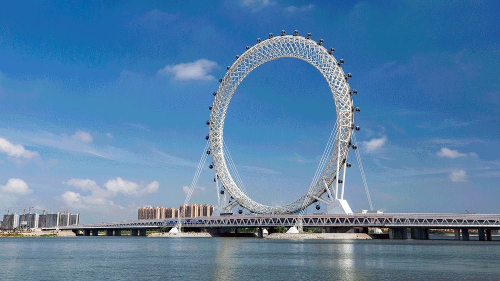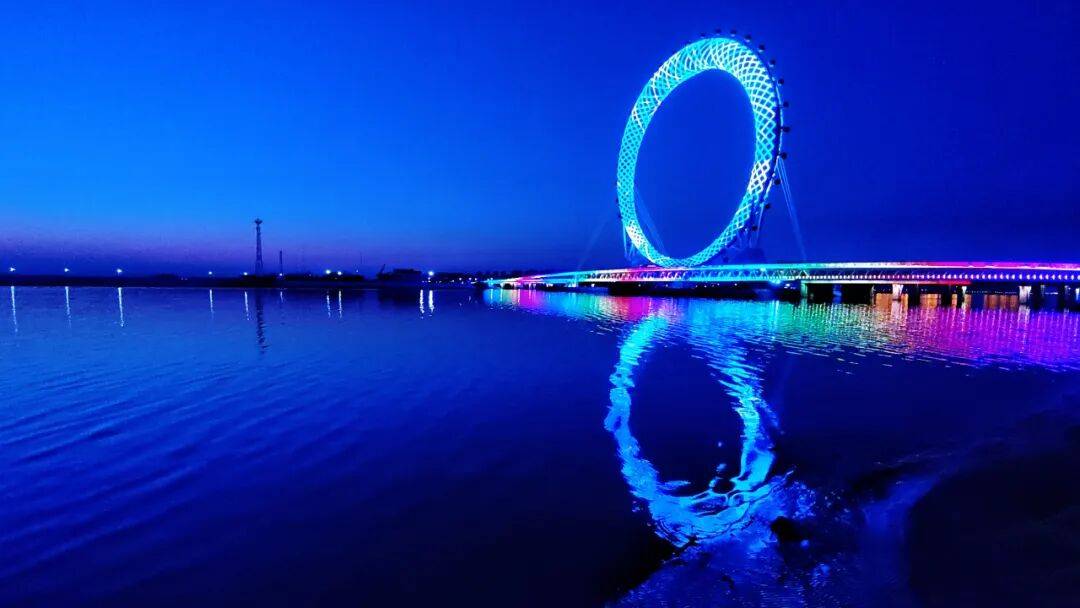 世界最高的无轴式摩天轮“渤海之眼”矗立在白浪河畔,登上摩天轮,随着座舱缓缓升高,既可俯瞰白浪河的波涛翻滚,也能远眺渤海湾的烟波浩渺,光影流转间尽是浪漫氛围。