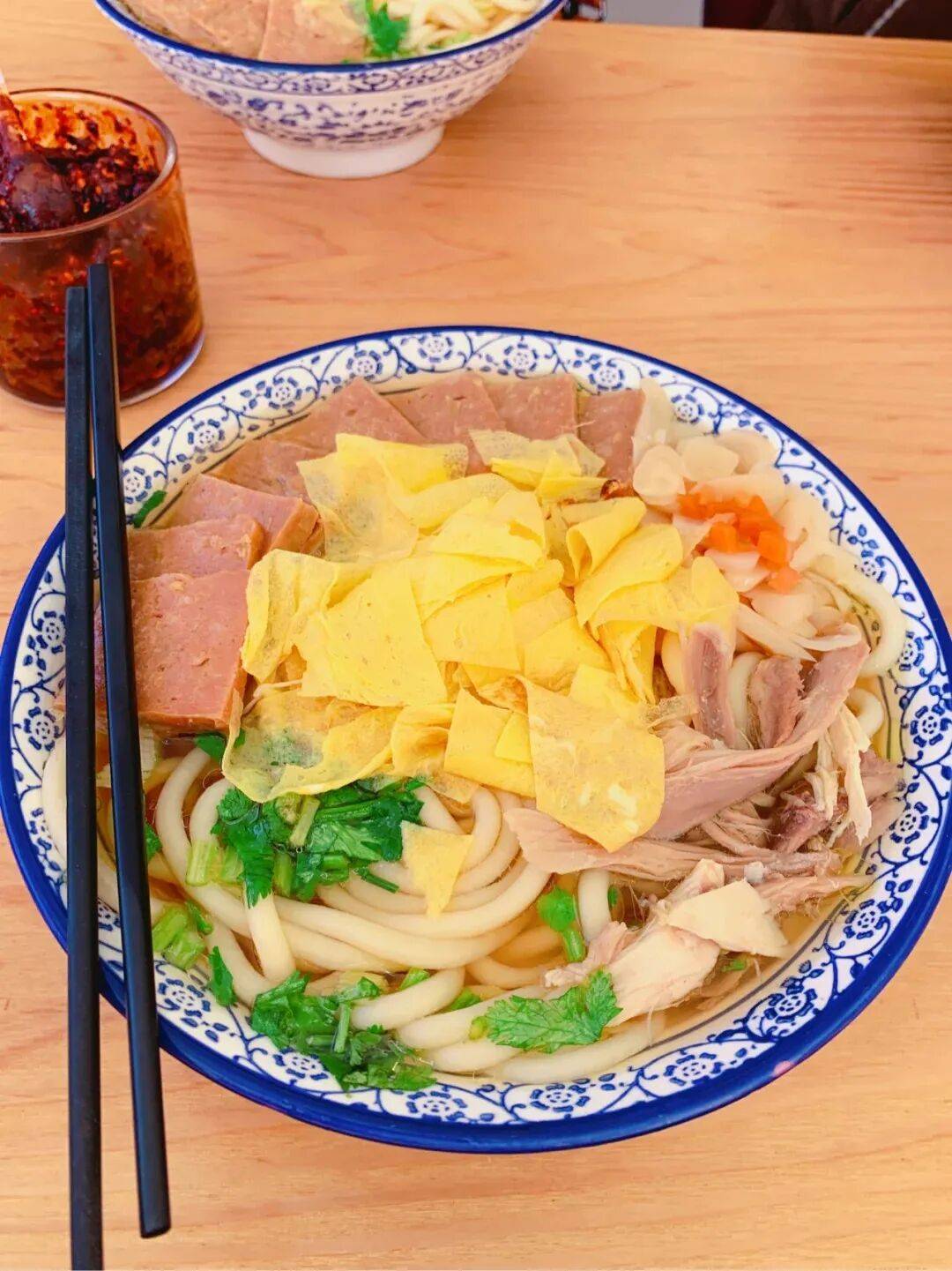 正午的餐桌上,一碗和乐柔韧爽滑,配上肉丸子、鸡蛋皮,每一口都是扎实的幸福感。还有热气腾腾的朝天锅,薄饼卷着卤煮的猪肉,配上一碗原汤,暖身又暖心。