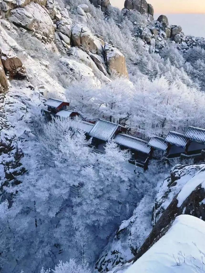 雪后初霁,崂山巨峰游览区一早便迎来了热情高涨的游客,大家有序地排起长队,迫不及待想要拥抱这片纯净的冰雪仙境。