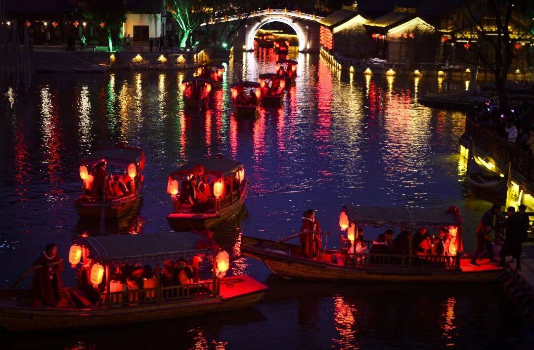 在古城夜色中,小船悠悠荡荡,在如镜的河面上划出一道道涟漪。船妹子轻摇船橹,那有节奏的声响,仿佛是古城夜曲的独特音符。此刻,你仿佛穿越回古时,成为这水乡画卷中的一抹诗意点缀,静静感受着古城夜的静谧与美好。