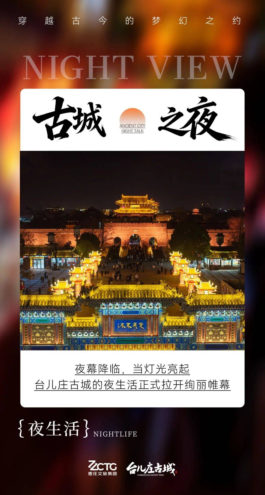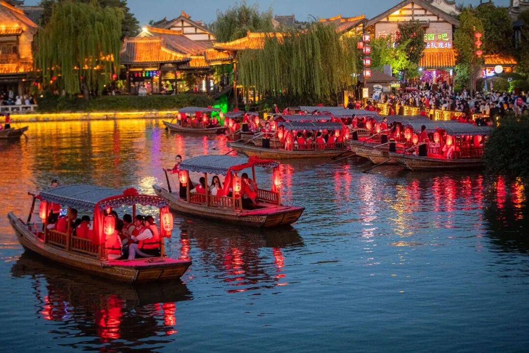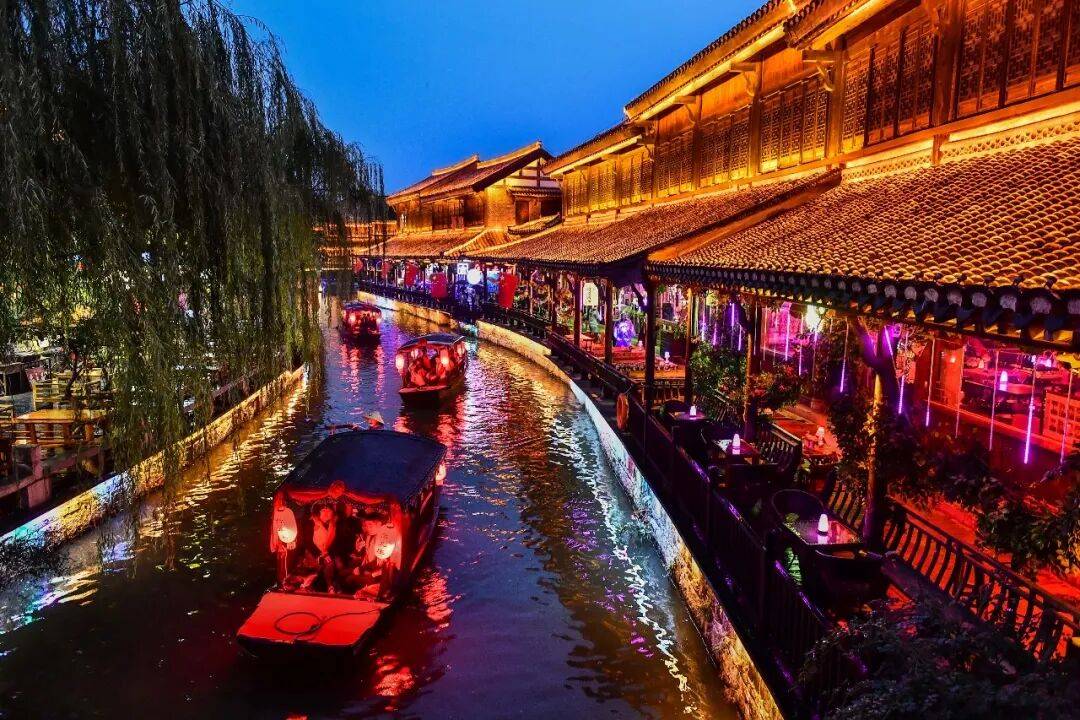 夜幕降临,城市喧嚣渐远,台儿庄古城的夜生活正拉开绚丽帷幕,宛如一场跨越时空的绮梦,等待着你去探寻。