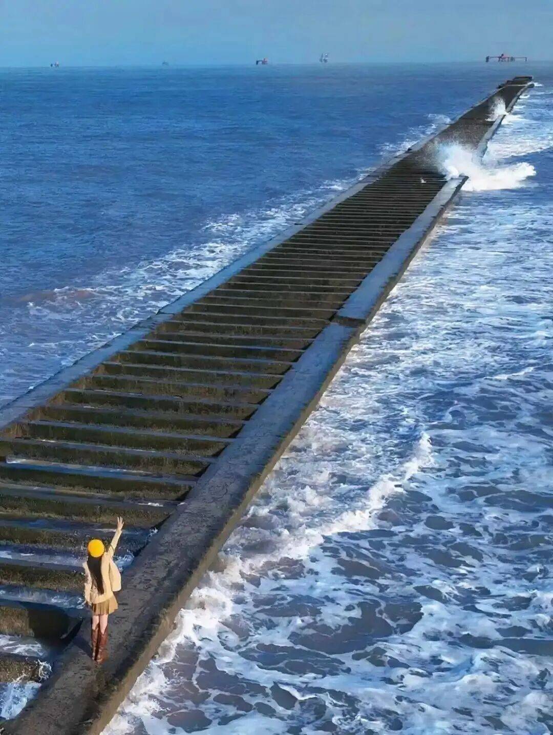 孤东海堤的蓝白浪漫