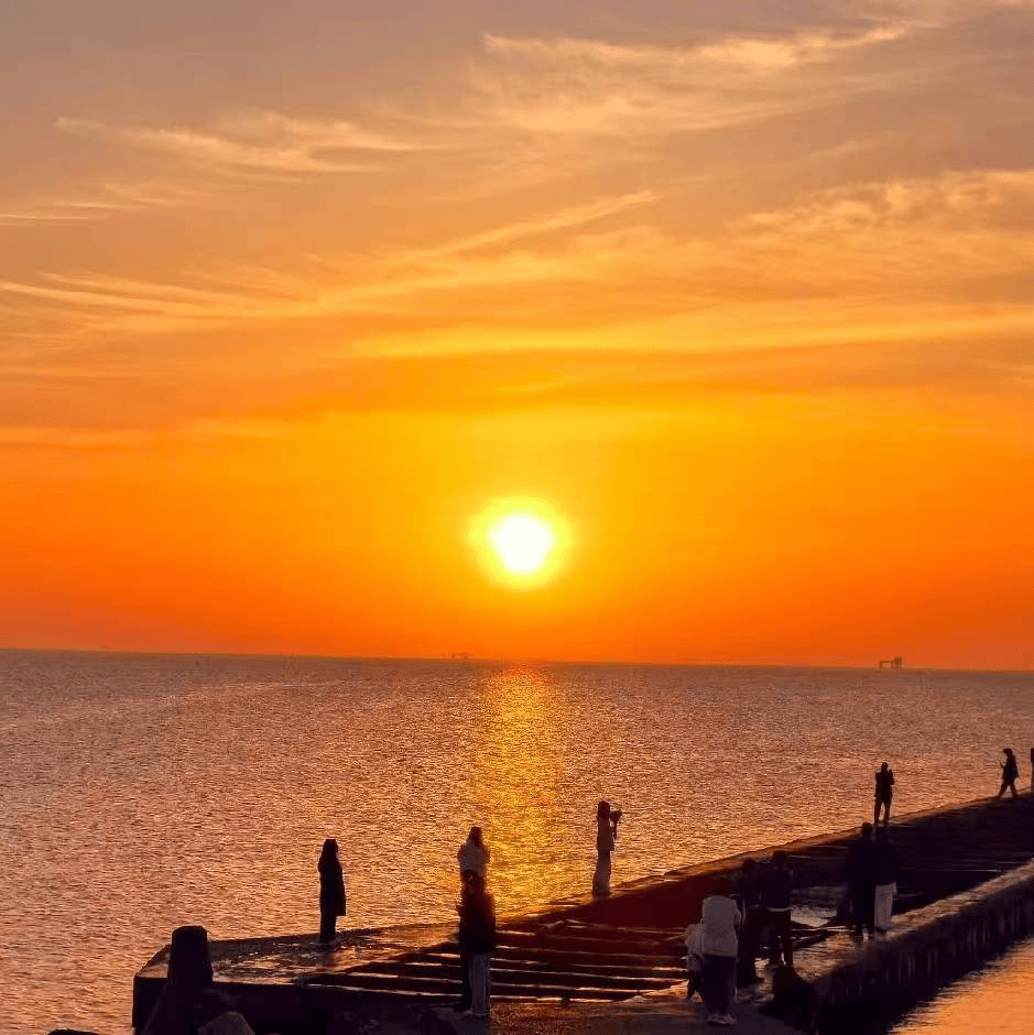 清晨,可静待海上日出,当第一缕阳光跃出海面,整个渤海湾瞬间碎成万片金箔。