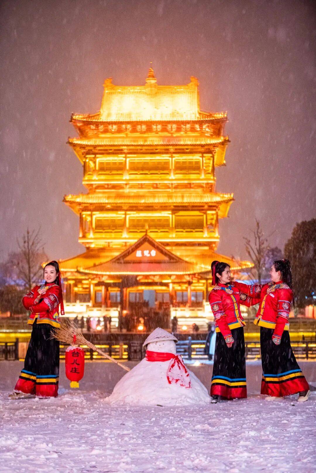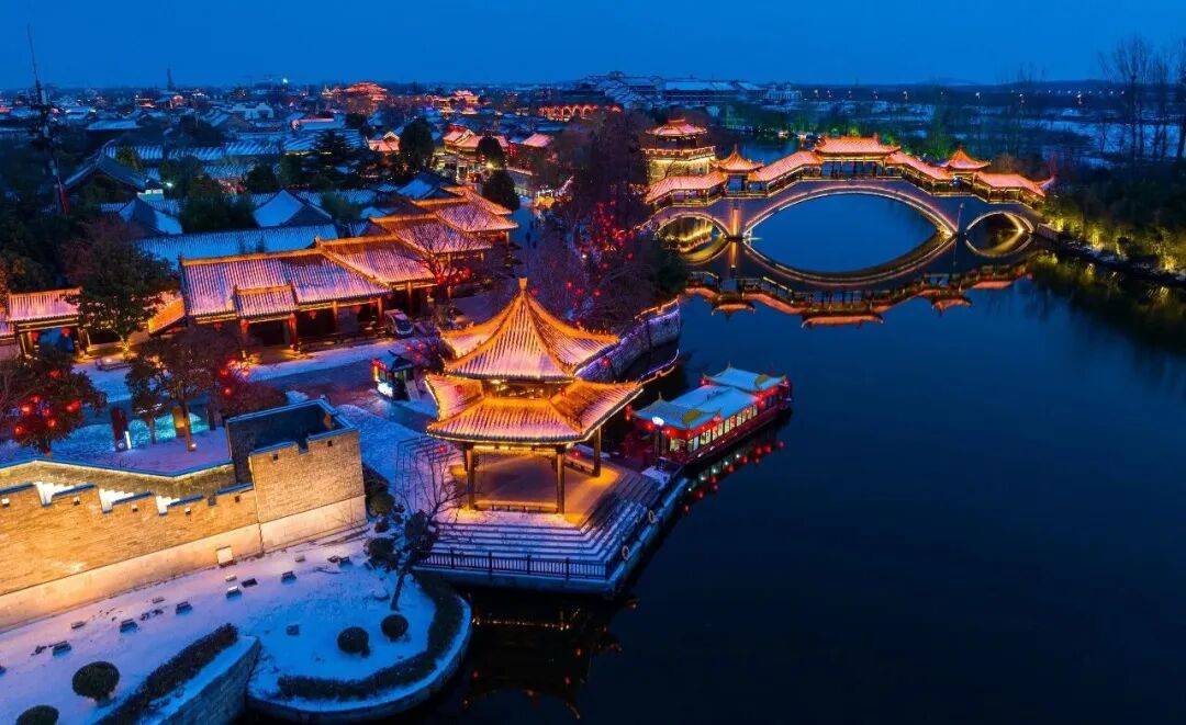 初雪轻落,台儿庄古城正等待与你相逢,共度一段静谧而浪漫的时光。