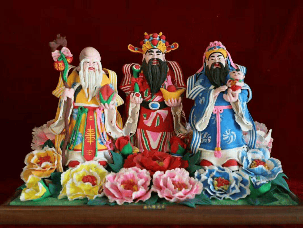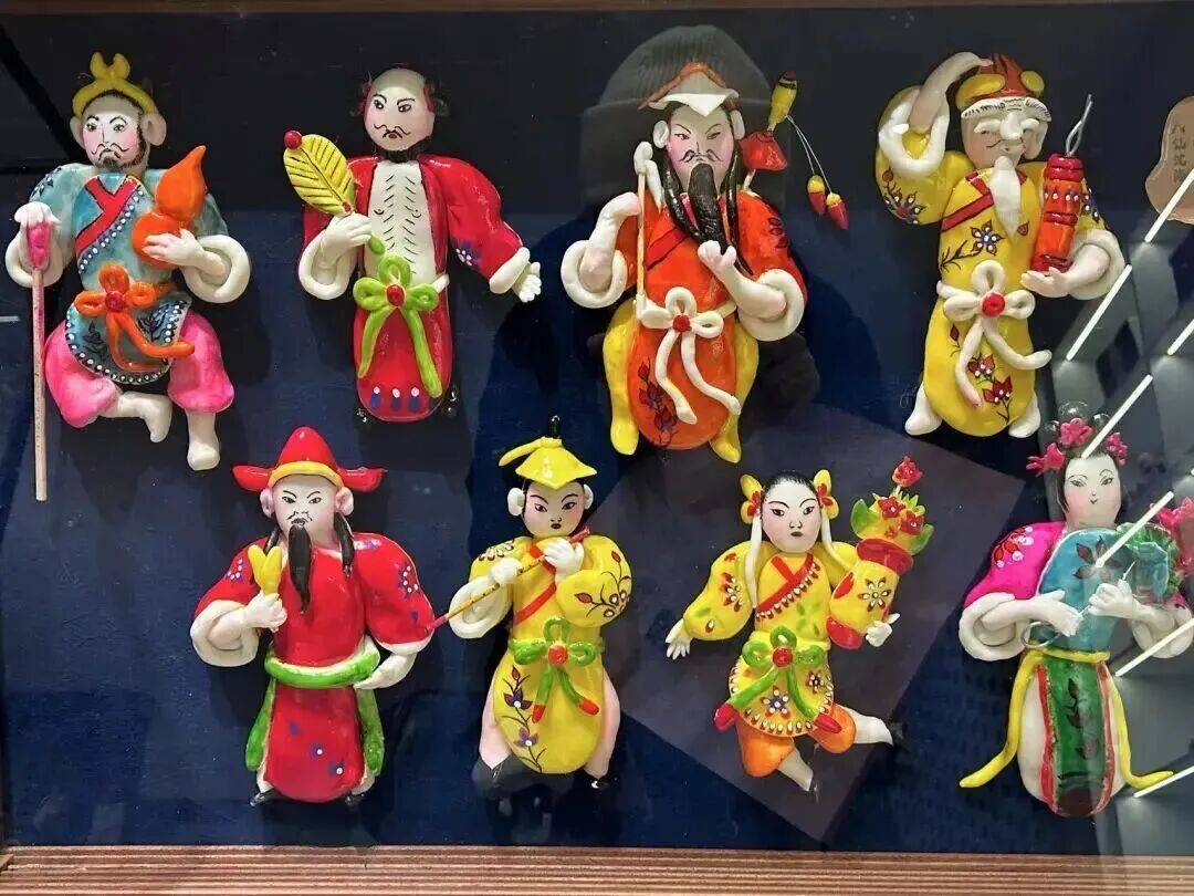 菏泽曹州面人是国家级非物质文化遗产,距今已有一百五十多年历史。以细小麦面和江米面为主要原料,蒸熟后捏制成各式各样的塑像。曹州面人用色大胆艳丽,对比强烈,尤其擅长塑造戏曲人物,眉眼传神,栩栩如生,仿佛下一秒就要开口唱念做打。