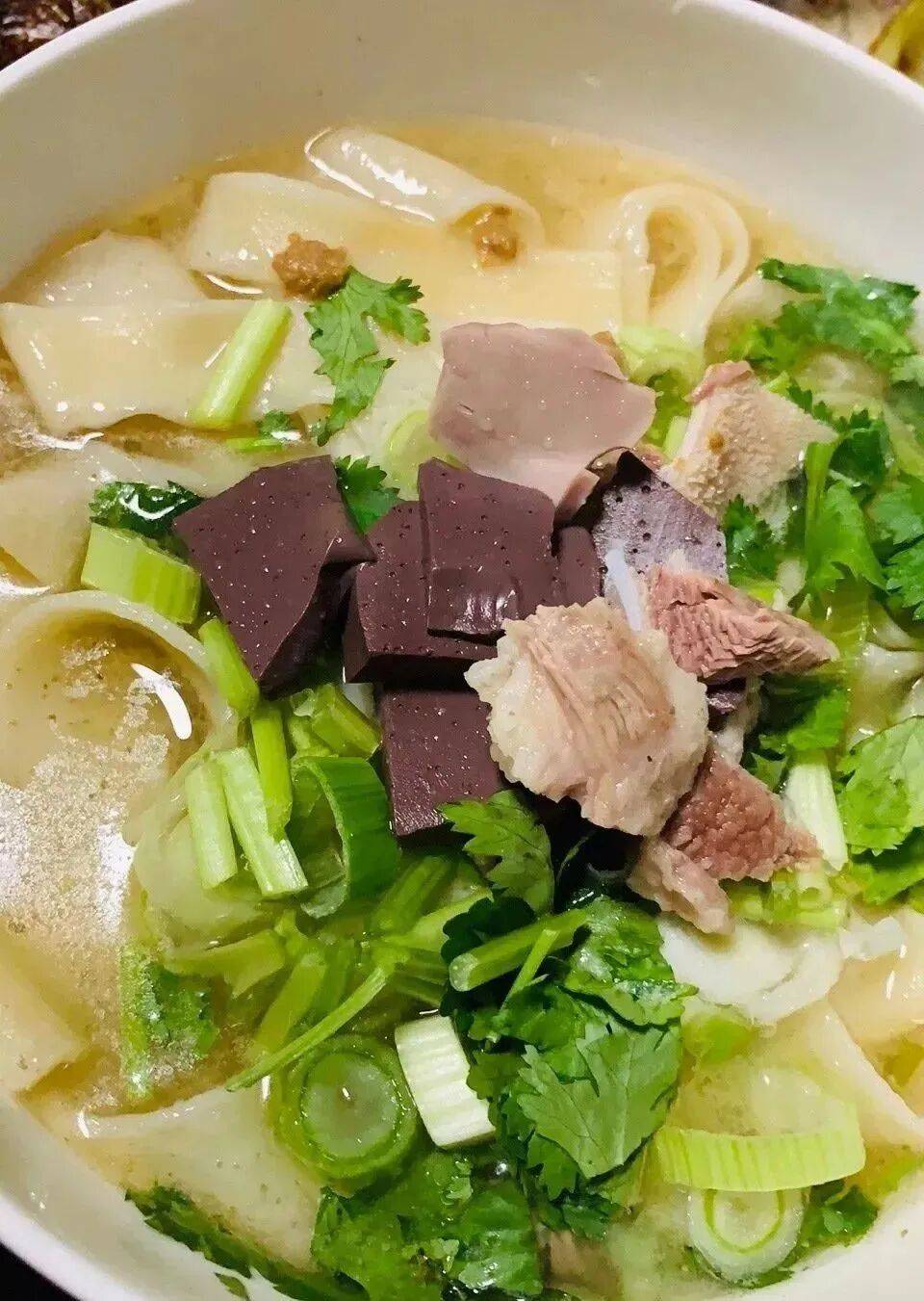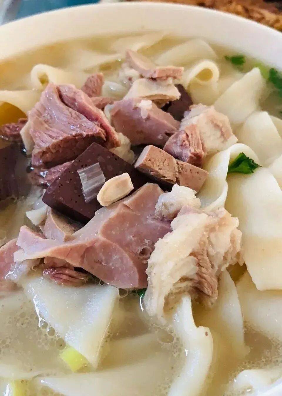 以牛骨、羊肉为底,慢火熬煮至肉质软烂,汤色醇厚,加入大量黑胡椒调味,不腥不膻,辛辣感恰到好处。