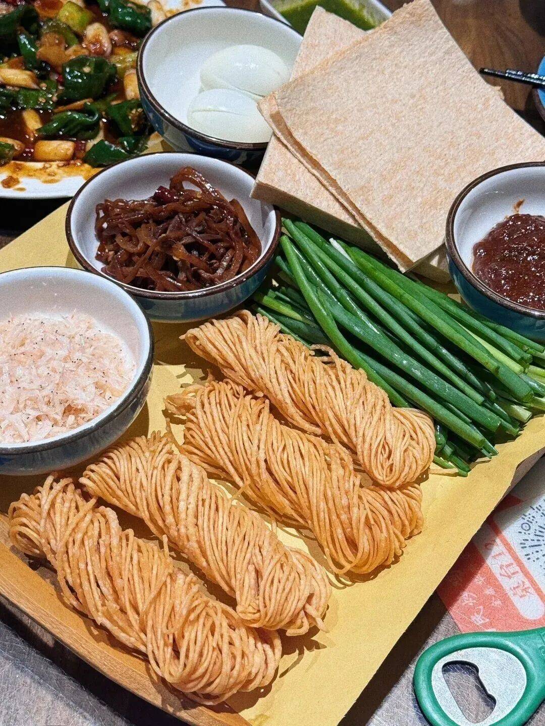 临沂煎饼卷大葱,煎饼的柔韧与葱白的鲜脆在口中交织,最简单的搭配,却迸发出最直接的能量。