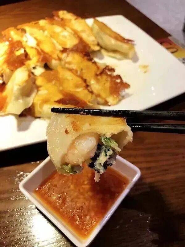 它似煎饺又不是煎饺,底部酥脆,面皮柔软,馅料十足,包含大虾、牛肉、素三鲜等不同味道,是青岛早餐不可或缺的一味。