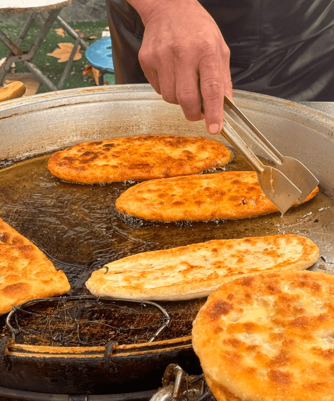面团在老师傅手中抻开、抹馅、折叠,旋即滑入热油——“刺啦”一声,唤醒了整座城的味觉。