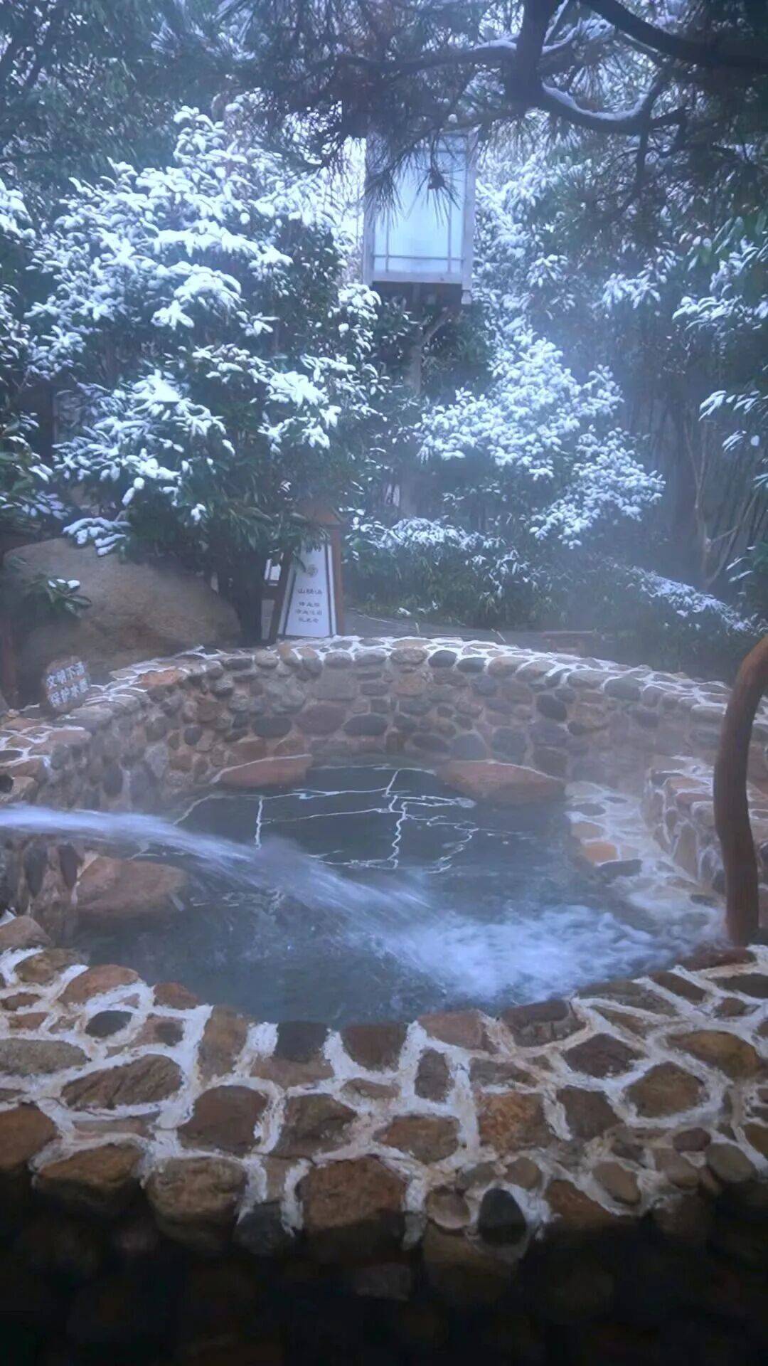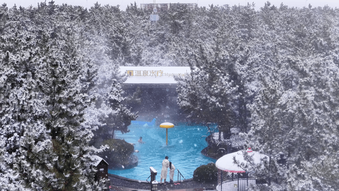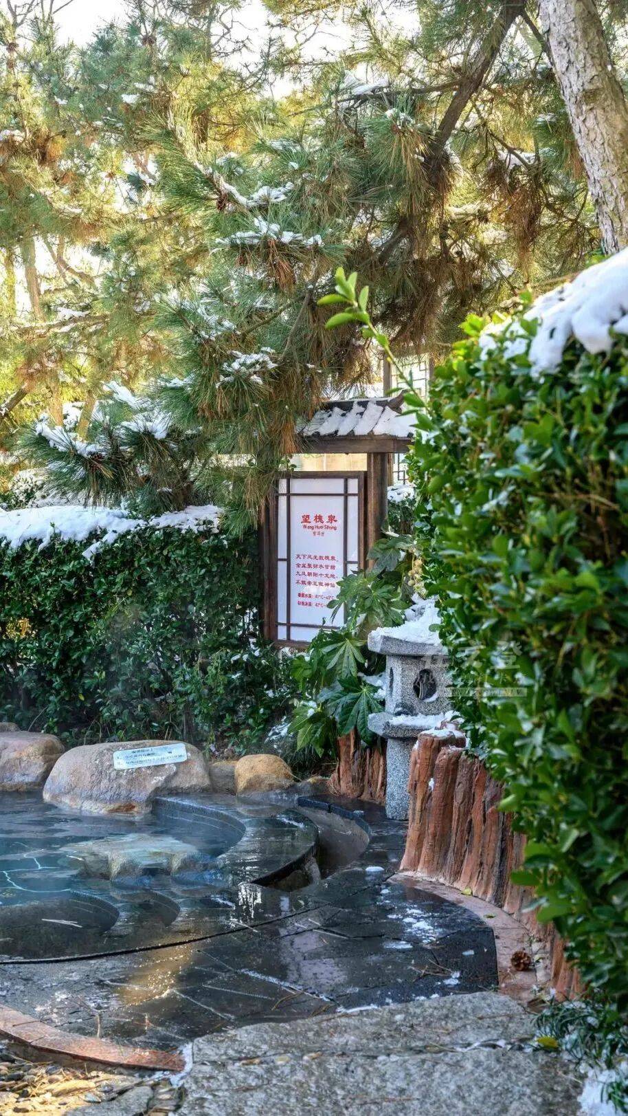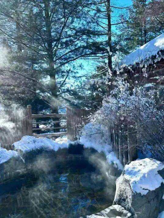 踏入温泉的刹那,温暖瞬间包裹全身,肩头感受到雪花的清凉,这是冬日最极致的感官体验。