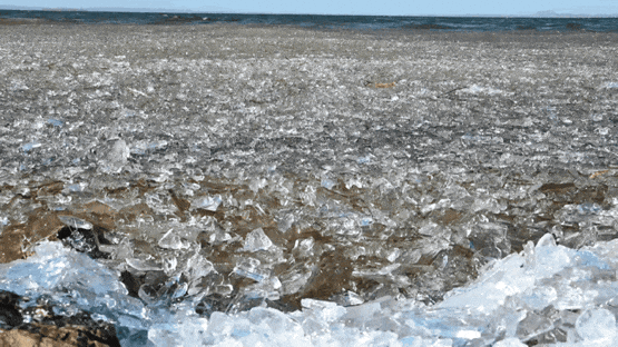 勾勒出“半湖碧水半湖冰”的绝美画卷