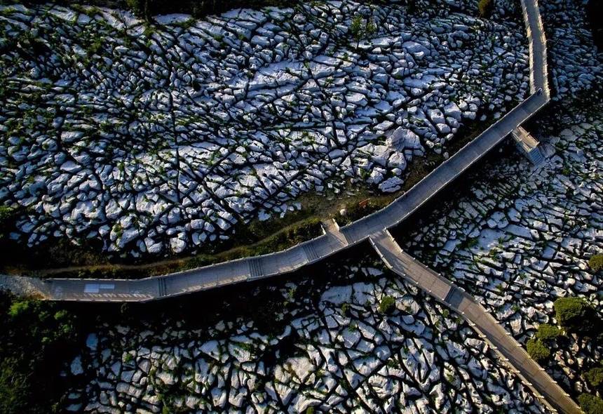 当暖阳穿透松柏,洒在北国石海上,层层叠叠的巨石仿佛被镀上了一层金边。喀斯特地貌形成的奇观是2.5亿年前海底世界的见证,漫步其间,触摸着冰冷而坚硬的岩石,仿佛能听见地球演变的回响。