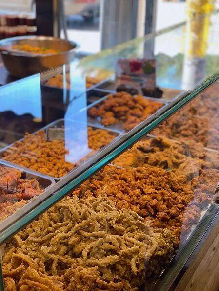 咸香椒麻的博山炸肉当然也不能错过,刚出锅的炸肉,色泽金黄,外皮油亮诱人。