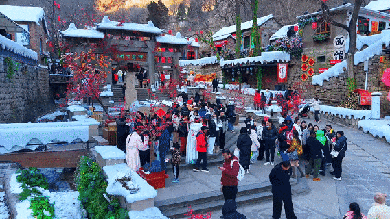 在国家4A级旅游景区红叶柿岩,雪覆古村,梅映高墙,三十余种非遗杂艺轮番上演,一幅“踏雪寻梅”的冬日画卷正在缓缓展开。