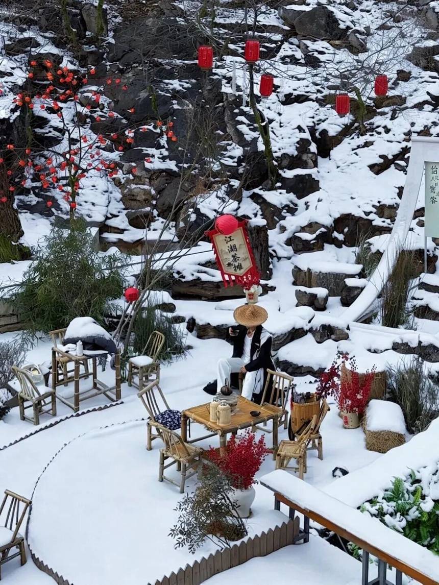 你还可以在“围炉煮咖”的氤氲热气中捧一杯暖咖,看雪花落入炭火,听茶壶轻吟,让时光在慢火中静静流淌。