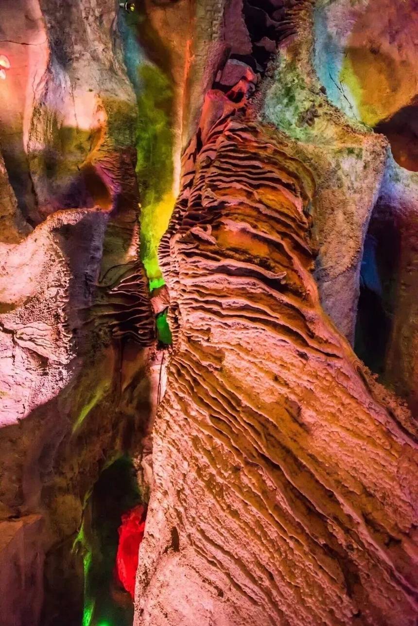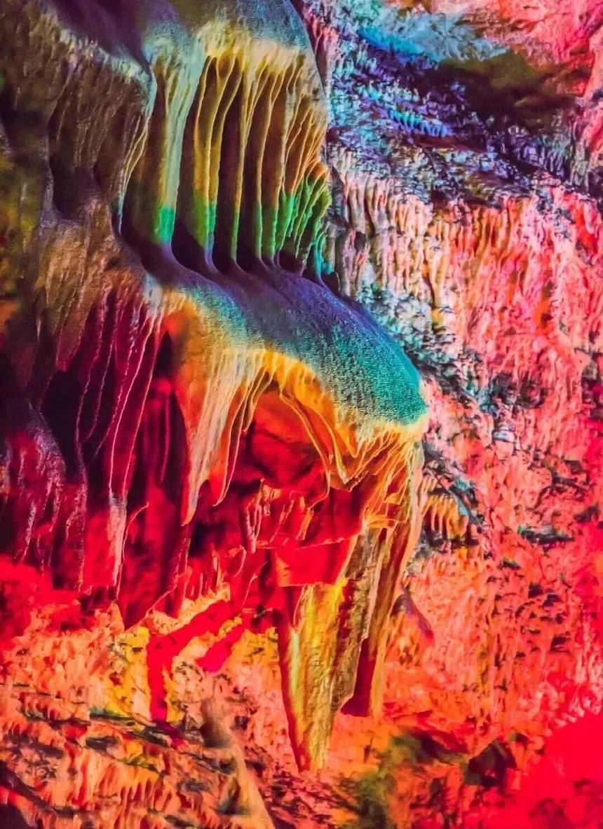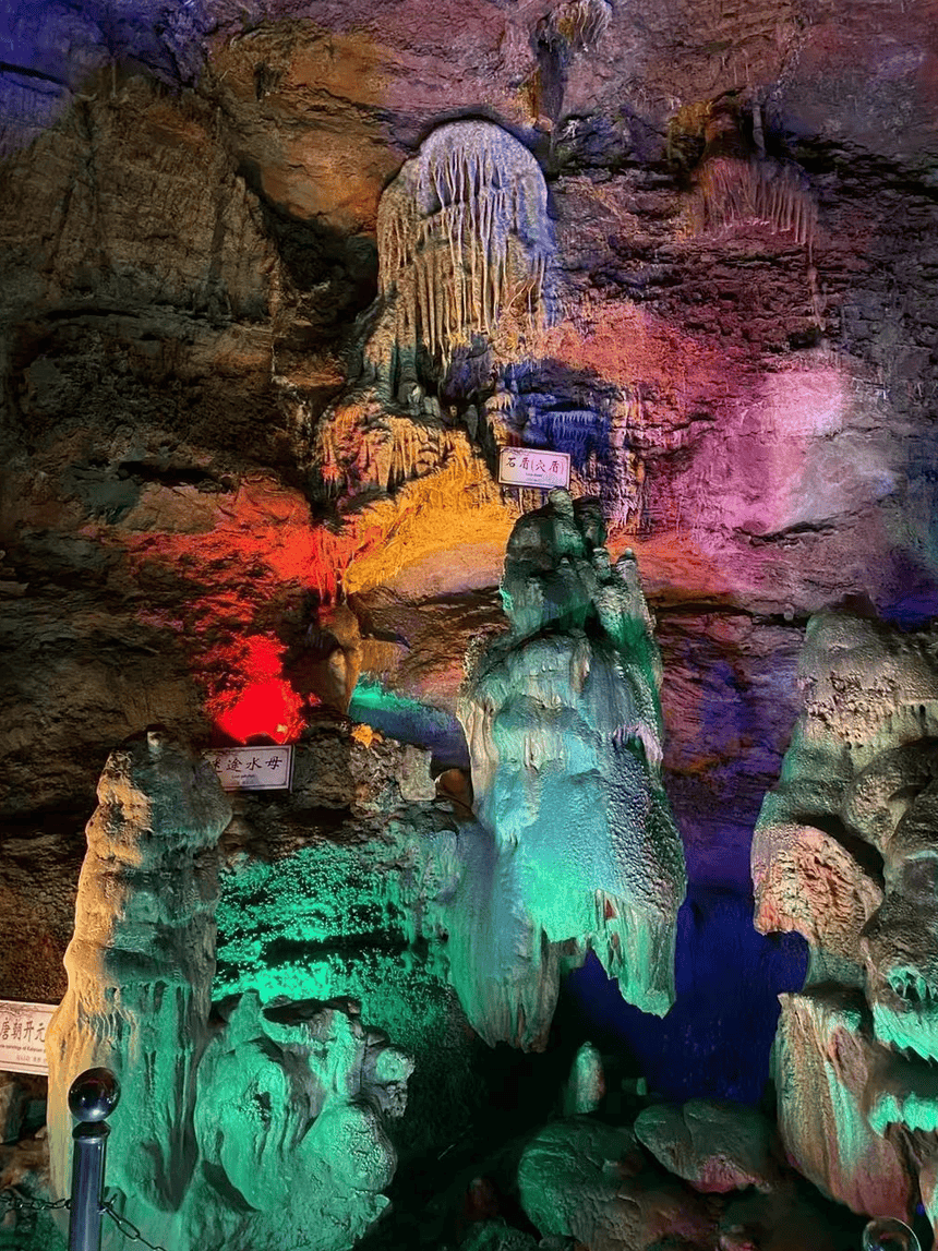 洞内设置六大主题厅,水帘洞厅入口处石壁小洞如水帘垂落,宋代石刻“李”“女”“遇”字迹依稀可辨;龙脊厅45米长的“龙脊”构造罕见壮观,如巨龙盘踞。
