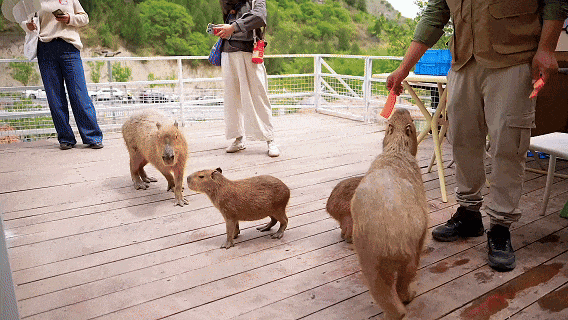 山下的“卡皮巴拉理想国”里,呆萌的水豚正等着与你会面,看它们泡温泉、吃水果的慵懒模样,所有的烦恼都会烟消云散。