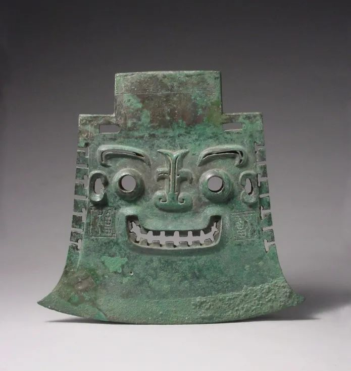 亚醜钺器身透雕人面纹,人面五官突出,双目圆睁,嘴角上扬,口中露出城墙垛口似的牙齿,极富威严,是山东博物馆的十大镇馆之宝之一。