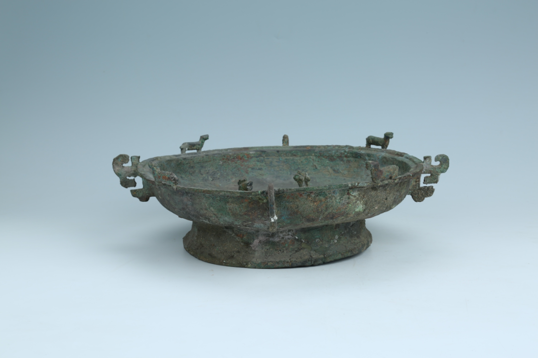 莒州博物馆藏的多兽铜盘是春秋时期的文化遗存,造型威严精美,纹饰华丽,是青铜器中之珍品。