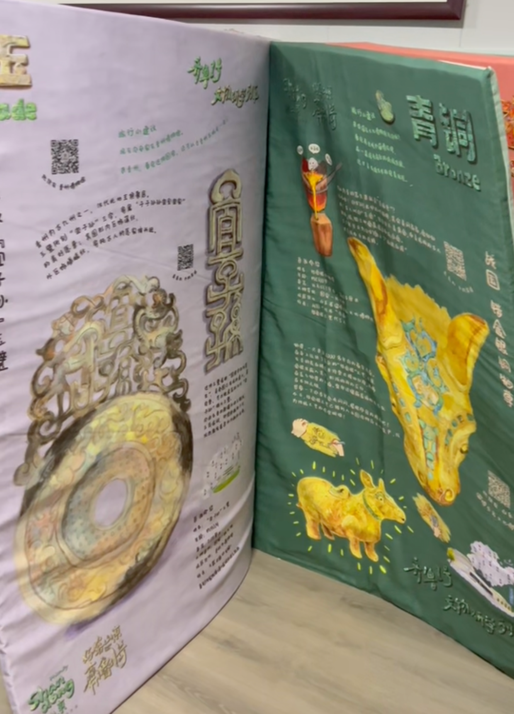 该块玉璧以体形大,雕技精湛为世人所珍,为汉代玉璧的上乘之作。若想了解更多,不妨翻阅一下列车上的巨型软绘本。