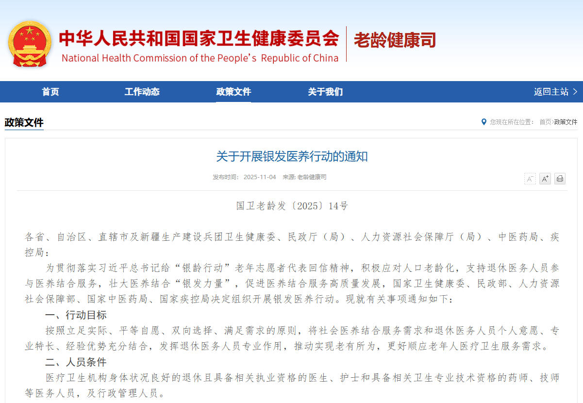 5部门联合印发《关于开展医养结合促进行动的通知》