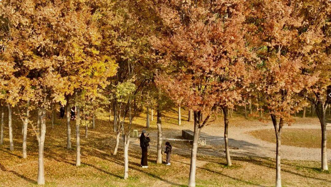 金黄的银杏、挺拔的水杉、林间斑驳的光影