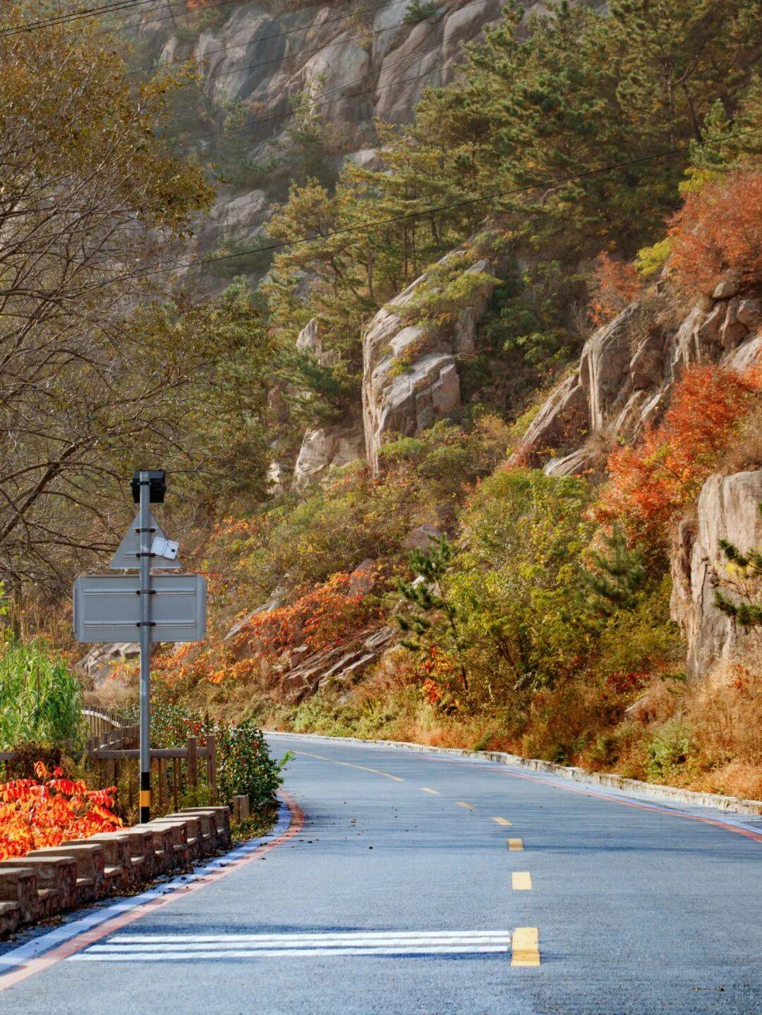 海阳民俗旅游路获评全国“十大最美农村路”,全长25公里,有167个弯道,贯通26个村庄。每年秋天,公路沿线漫山的红叶与秋色缠绵,交织成唯美的油画!随手拍都好看。