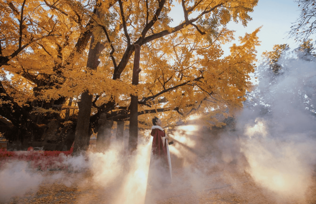 浮来山定林寺中,藏着一位穿越了近4000年时光的“树中王者”。深秋,它满树金黄,璀璨夺目,让每一位到访者为之震撼,驻足良久。