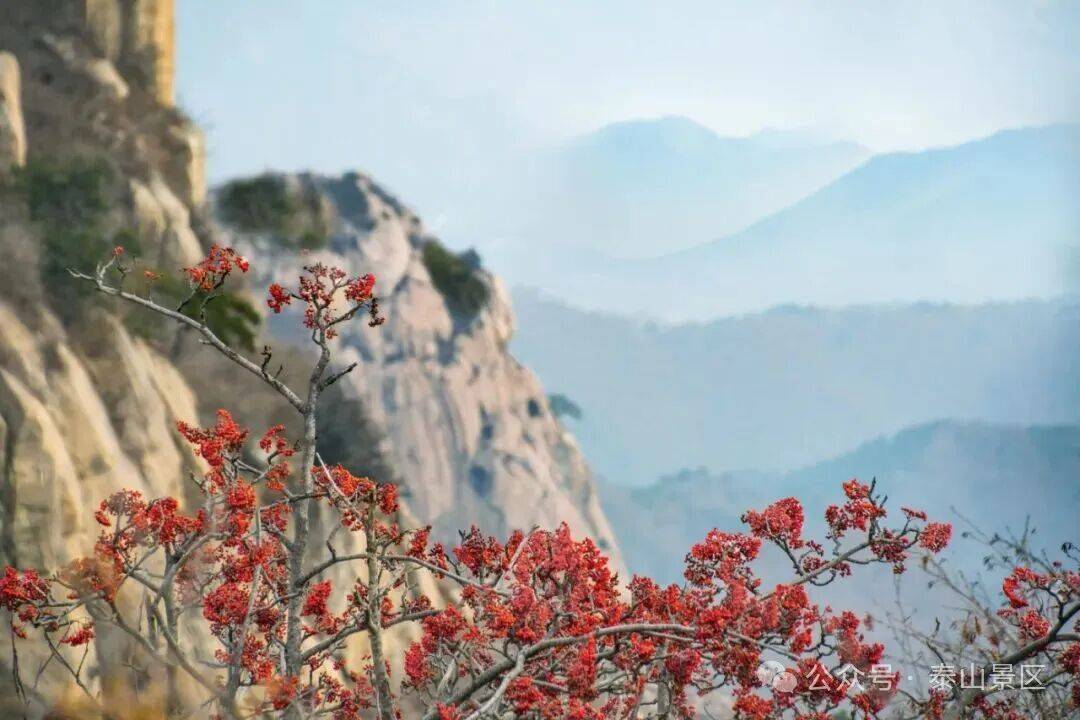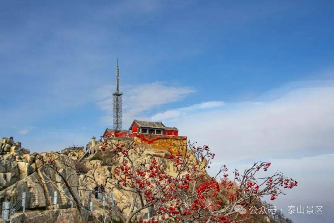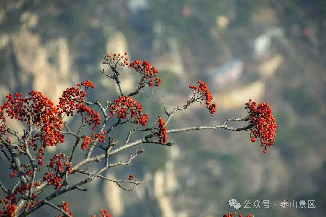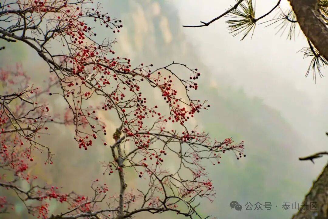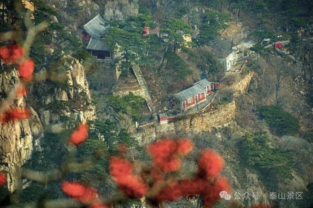 游人三三两两沿着石阶向上,有的裹着轻便的外套,指尖拂过微凉的栏杆;有的驻足拍照,将红果、松影与暖光一并收进镜头;偶尔传来几声轻快的交谈,混着山间清浅的风,让这初冬的泰山,既有静美的景致,又添了鲜活的暖意。
