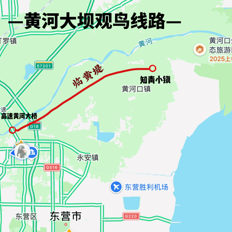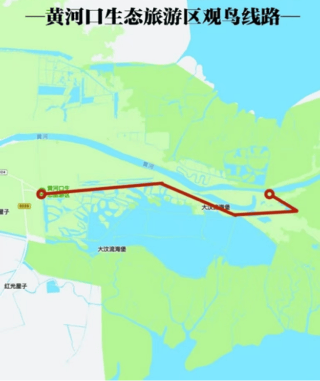 该线路位于黄河口生态旅游区内,黄河南岸,设立东方白鹳观测点、鸟岛、观鸟平台、天然柳林木栈道、鸟类科普乐园等5处观鸟点。