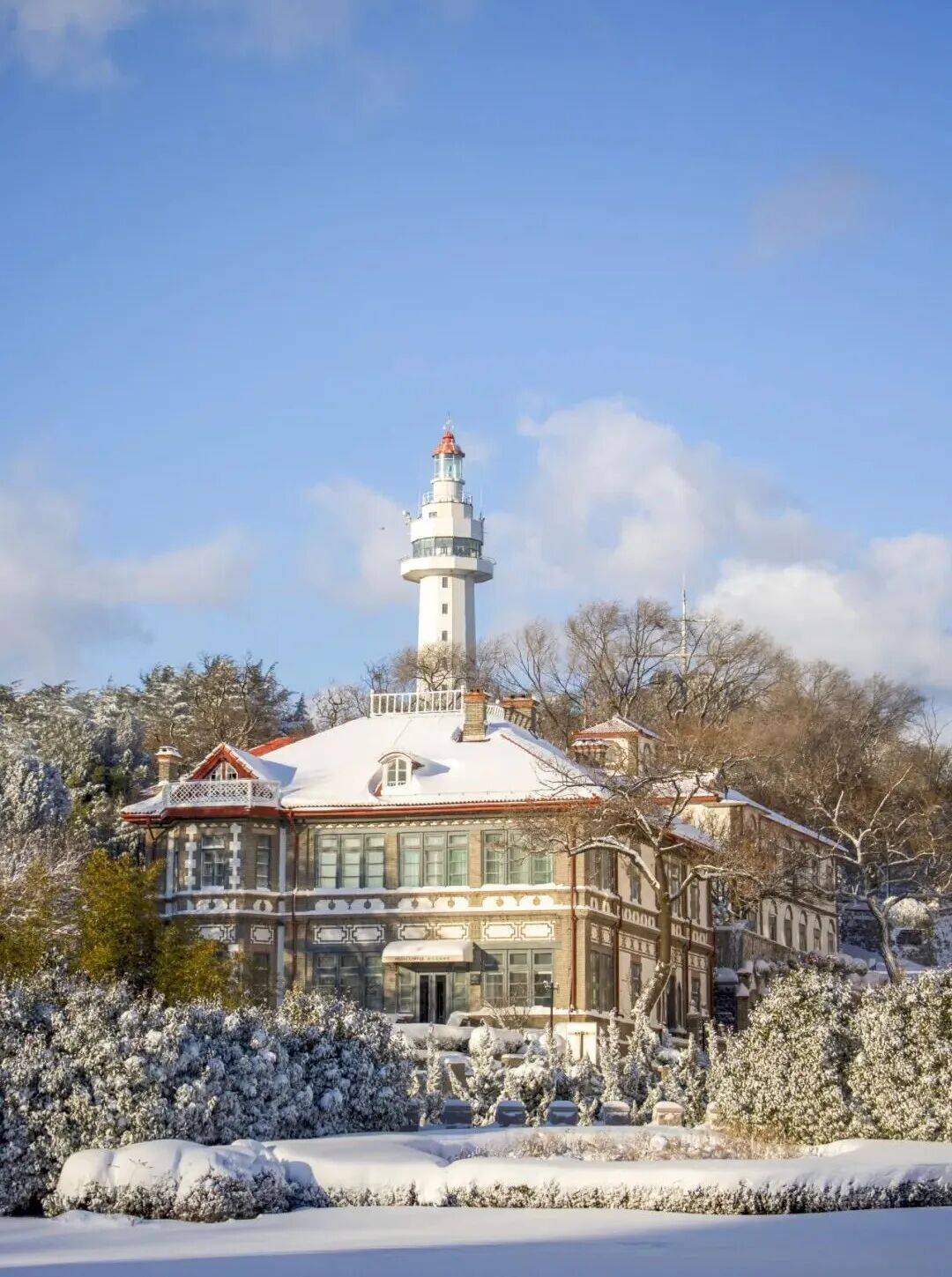烟台的地标建筑时光塔,仿佛一座海边的巨型“日晷仪”,雪落后美感upup,来此拍ins风氛围感大片轻松拿捏~