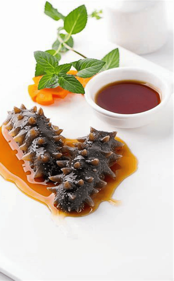 文登是中国海参的主产区之一,目前,全球海洋中大约生存着100多个海参品种。品质比较好的是山东半岛和辽东半岛的刺参,而文登的“老刺参”,更是刺参中的珍品。一道精品的葱烧海参,海参红褐油亮,大葱色泽金黄。细品一口,汤汁浓而不腻,海参鲜咸软糯,葱香味醇。