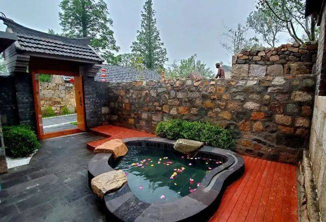 在慈口观泉语山居温泉民宿,百年呼雷汤温泉直接入户。一房一院一特色,每个院子里都有一眼热气腾腾的温泉,奔涌着欢迎着每一位旅人。石头、青砖、灰瓦……青松翠竹间的院落,被改造成温泉民宿。住在这里,既可感受古建筑之美,又可享受现代生活的舒适便利。