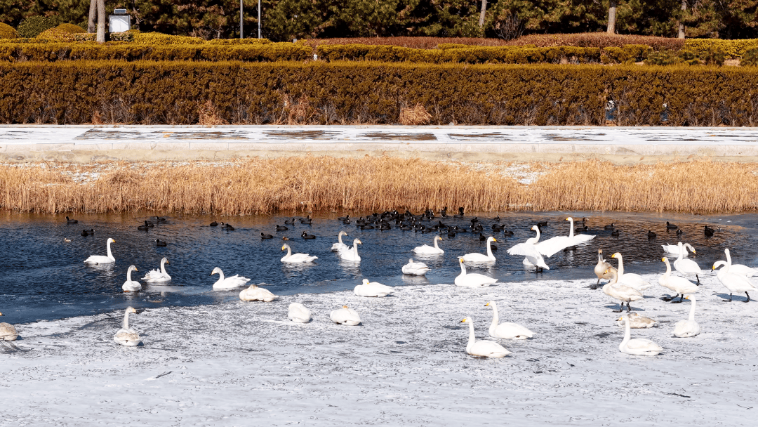 每年10月至次年3月,成群天鹅在威海南海新区天鹅栖息地栖息停留,与碧海、沙滩共同构成冬日里最动人的风景线。天鹅在水面嬉戏觅食,灵动身影与蓝天碧水相映,勾勒出人与自然和谐共生的生态画卷。