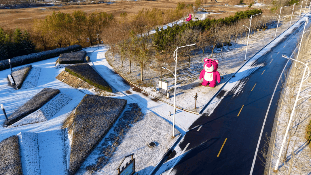 金花河湿地公园里草木葳蕤、水鸟翔集,还有草莓熊、秋千等形状各异的卡通雕塑与芦苇、水鸟、绿植等景观融为一体。在这里,悠闲地散步或者架起一张吊床,感受清风拂面,沉浸在呼吸清新空气的舒畅中,时间仿佛都慢了下来。