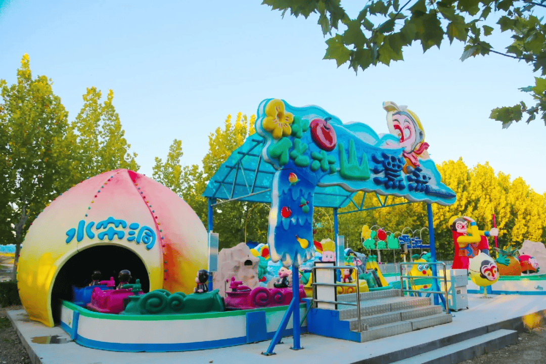 游乐园里,卡丁车、旋转木马、飞天椅、动力小火车等游乐设施齐全,小朋友可以放肆嗨玩。