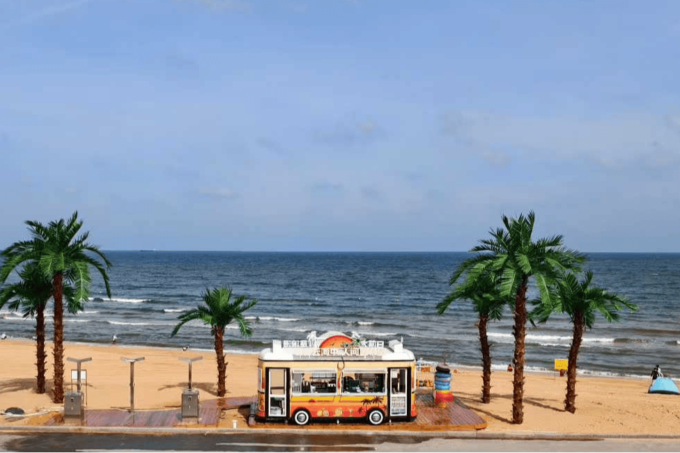 这里还是海边打卡胜地。沙滩上的各类建筑、雕塑可以作为打卡背景,傍晚时分,身后是渐变色的海上日落,随手一拍就是大片。