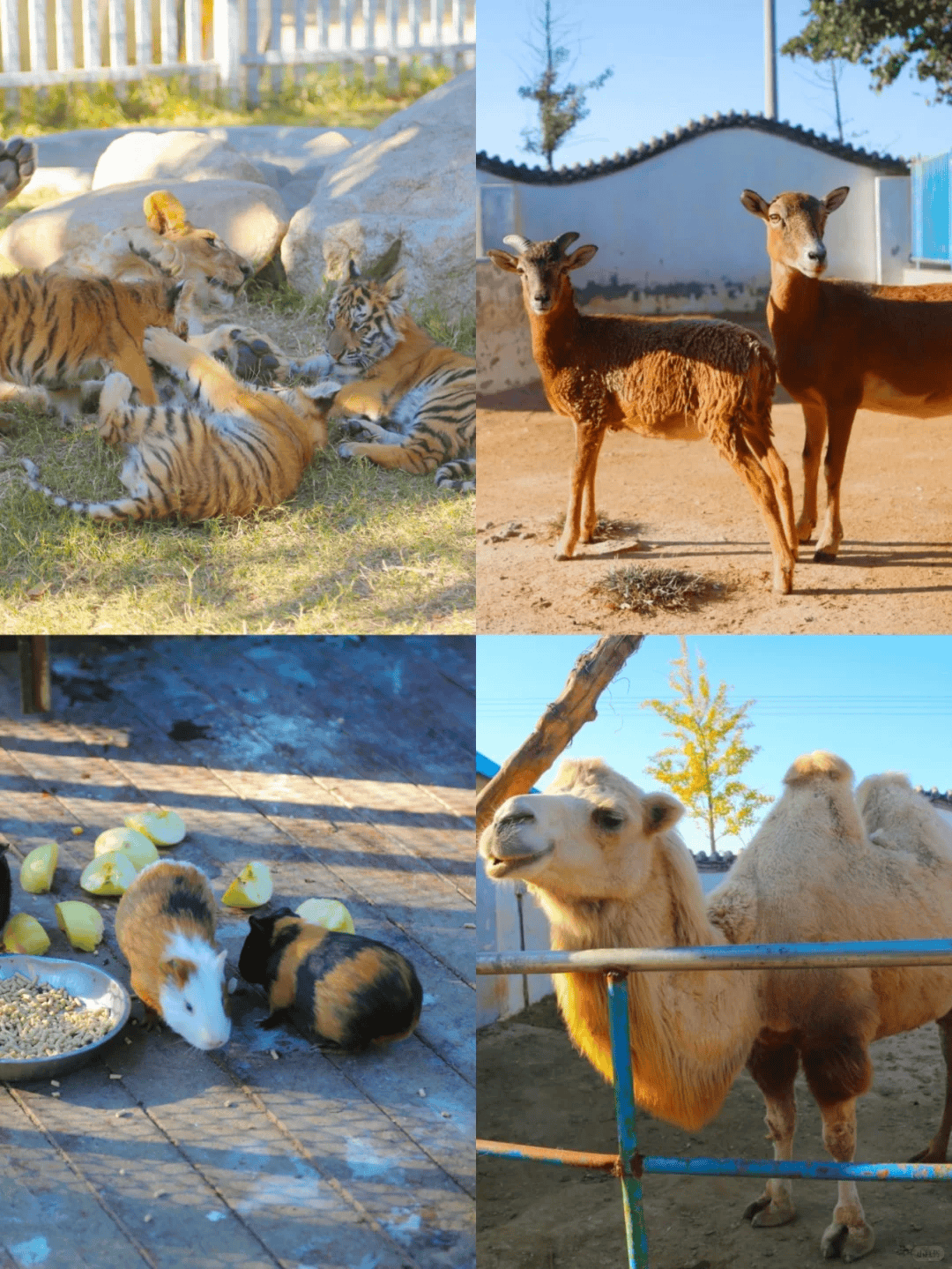 在马家庄动物园有老虎、狮子、斑马、熊等各种动物,还可以乘观光车进入散养区投喂动物。