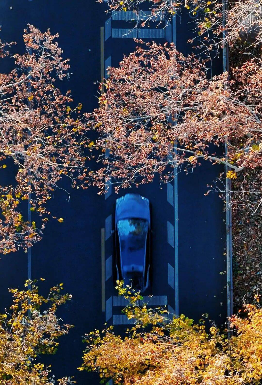 柏油路面上洒满斑驳光影