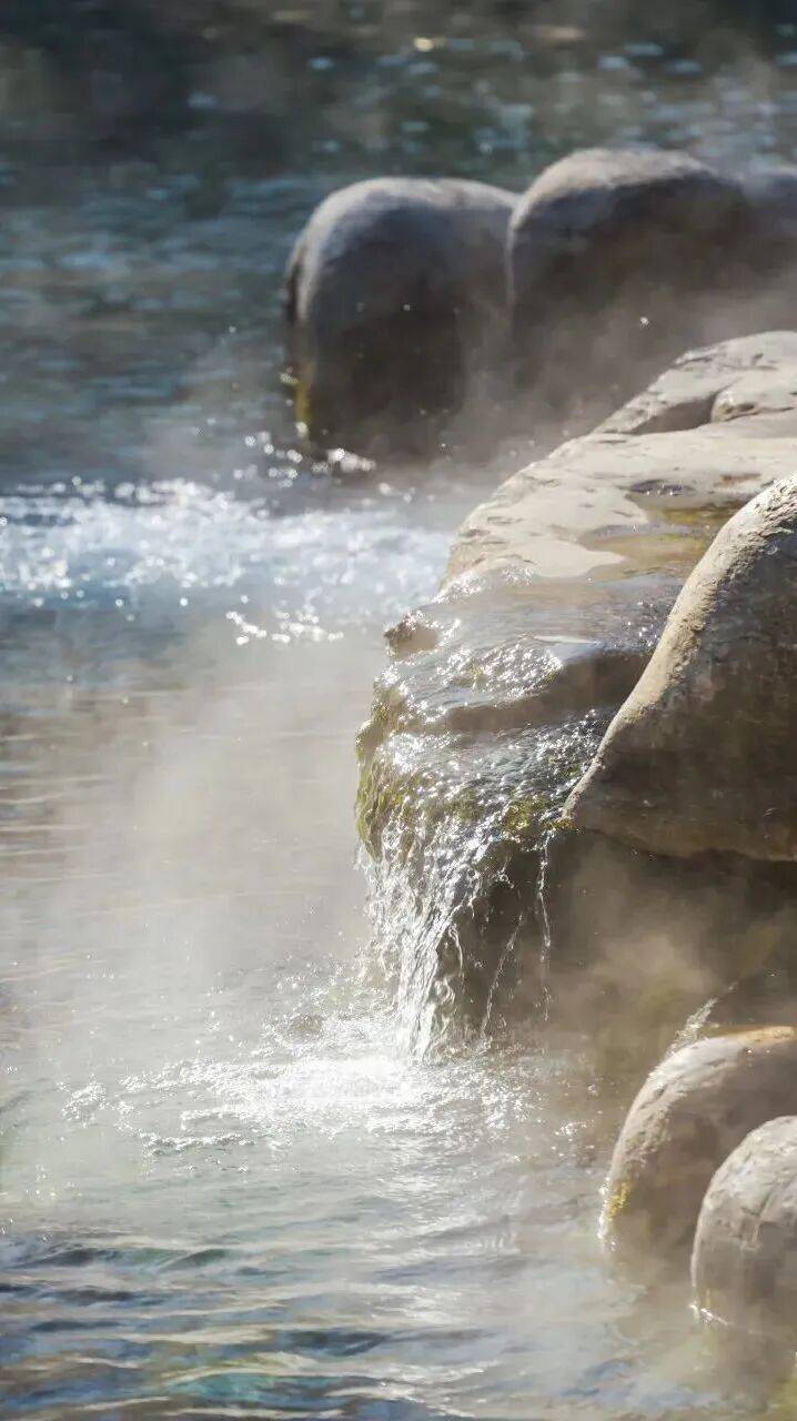 泉水裹挟着气泡翻涌,偶有锦鲤游过,搅碎一池波光,搭配着岸边的亭台楼阁,宛如一幅水墨画。