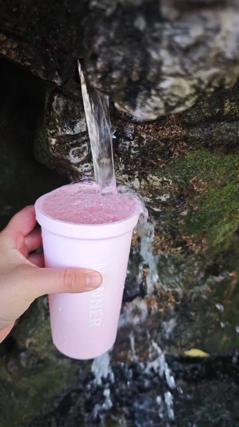每天清晨,当地人提着水桶、带着水壶,在此接水。